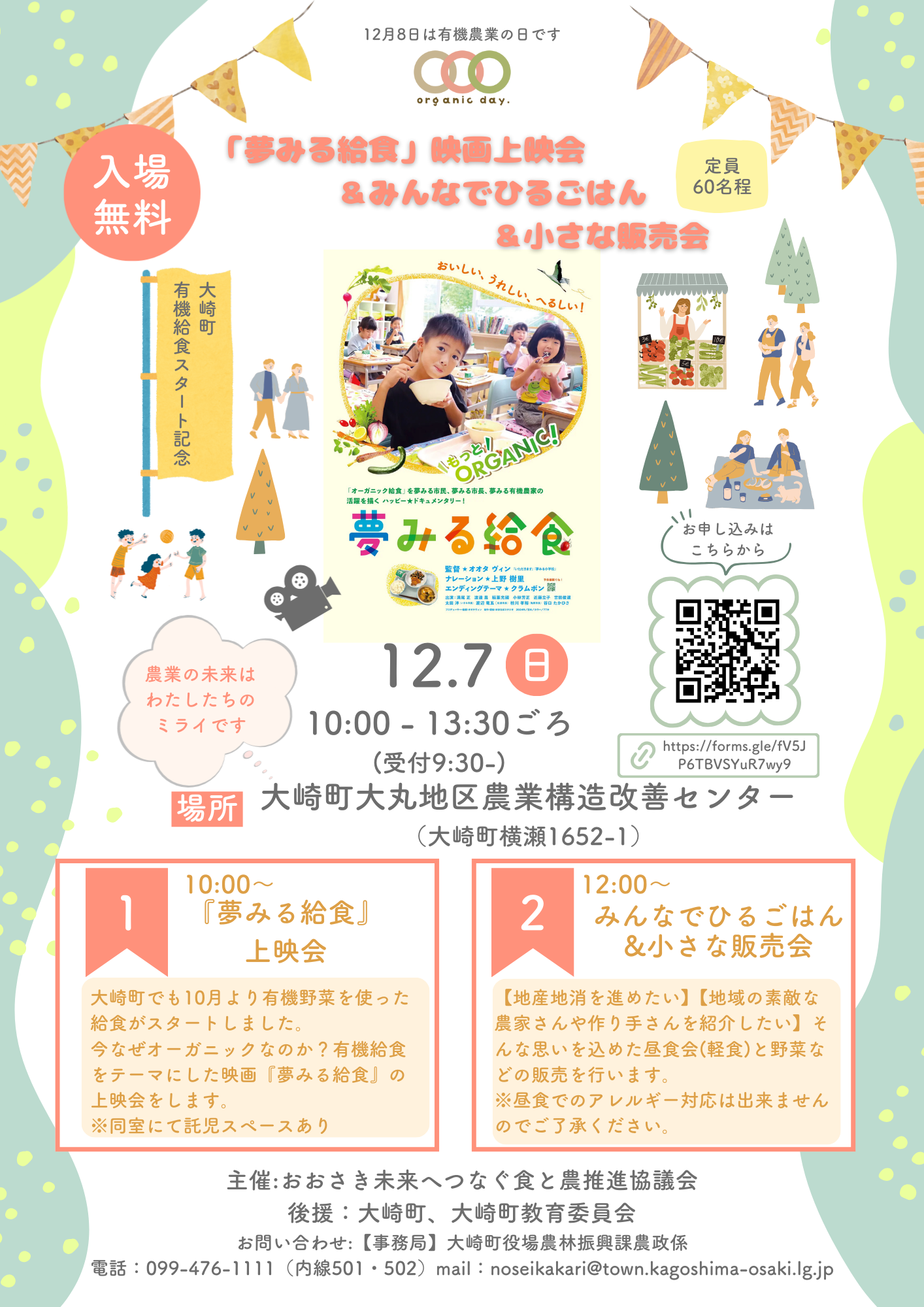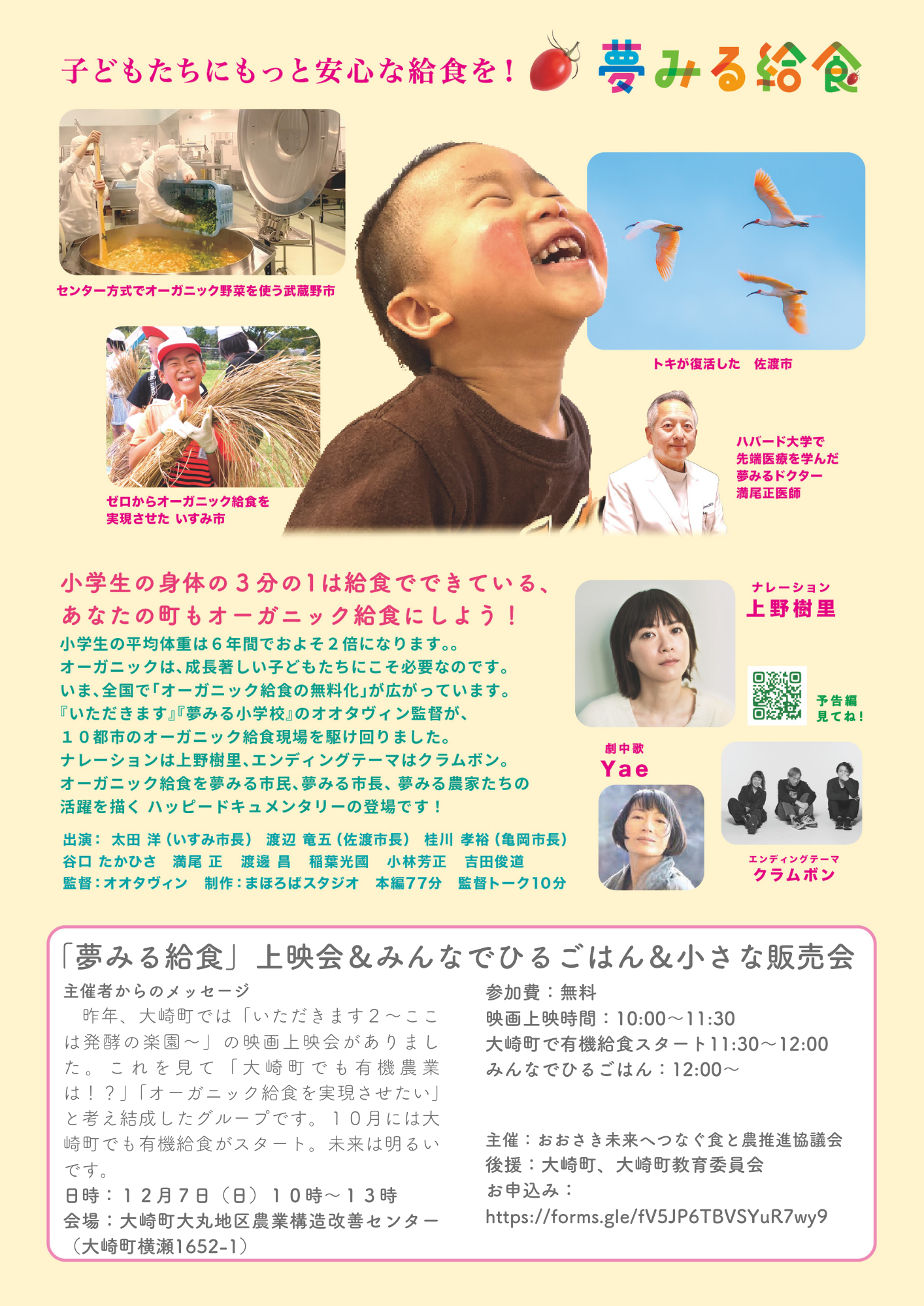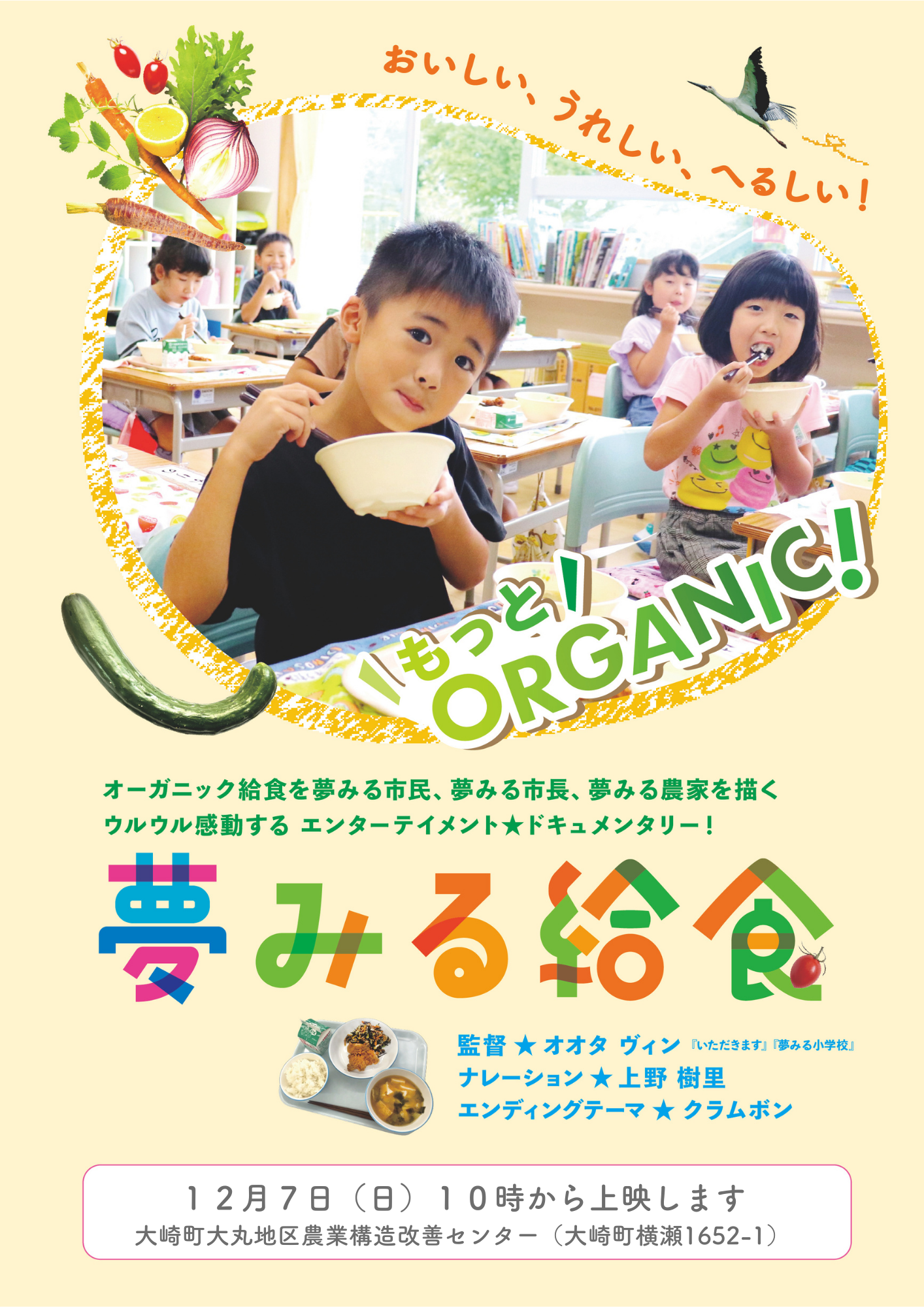 それを記念して有機給食をテーマにした映画『夢みる給食』の上映会をします。