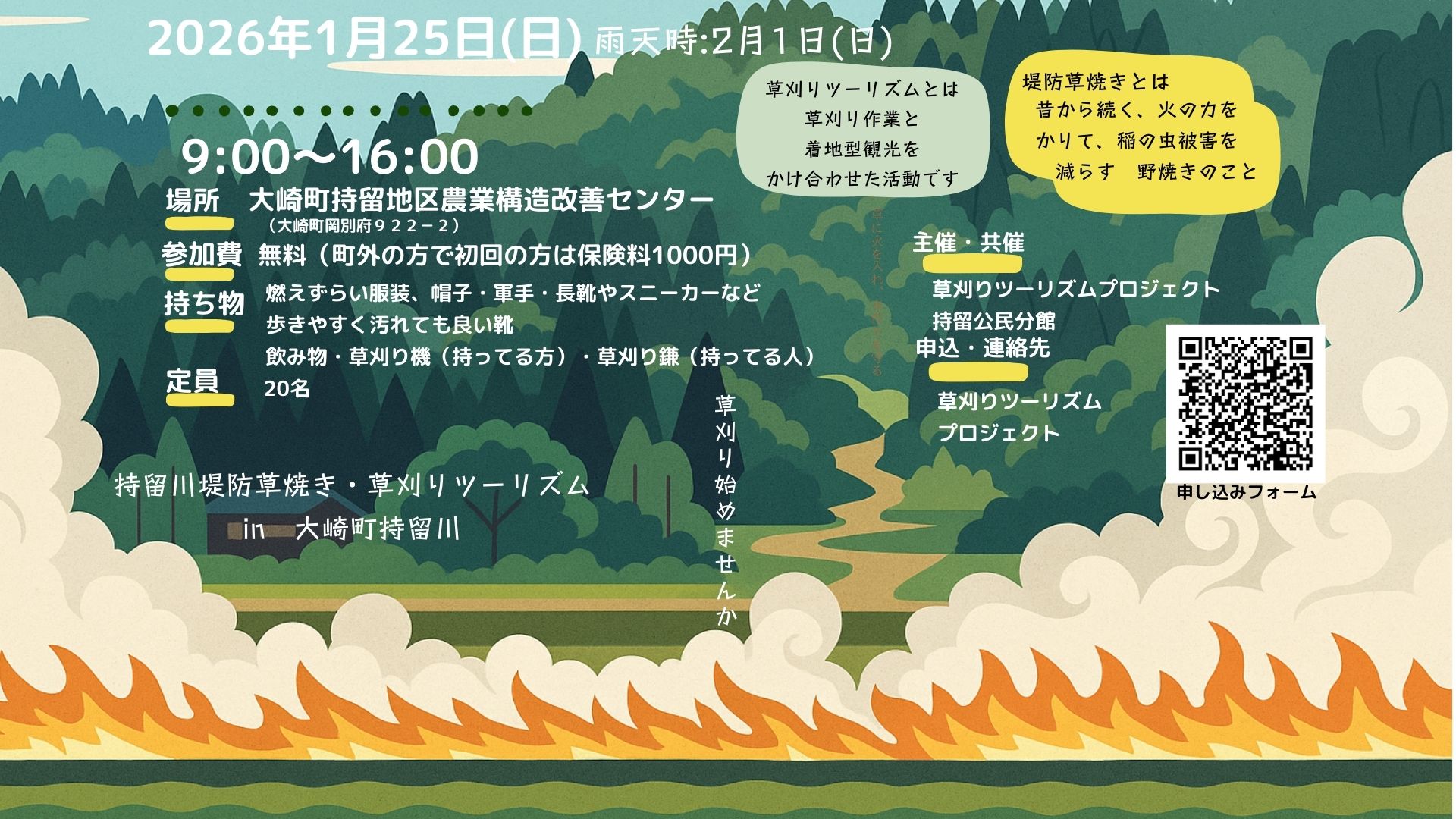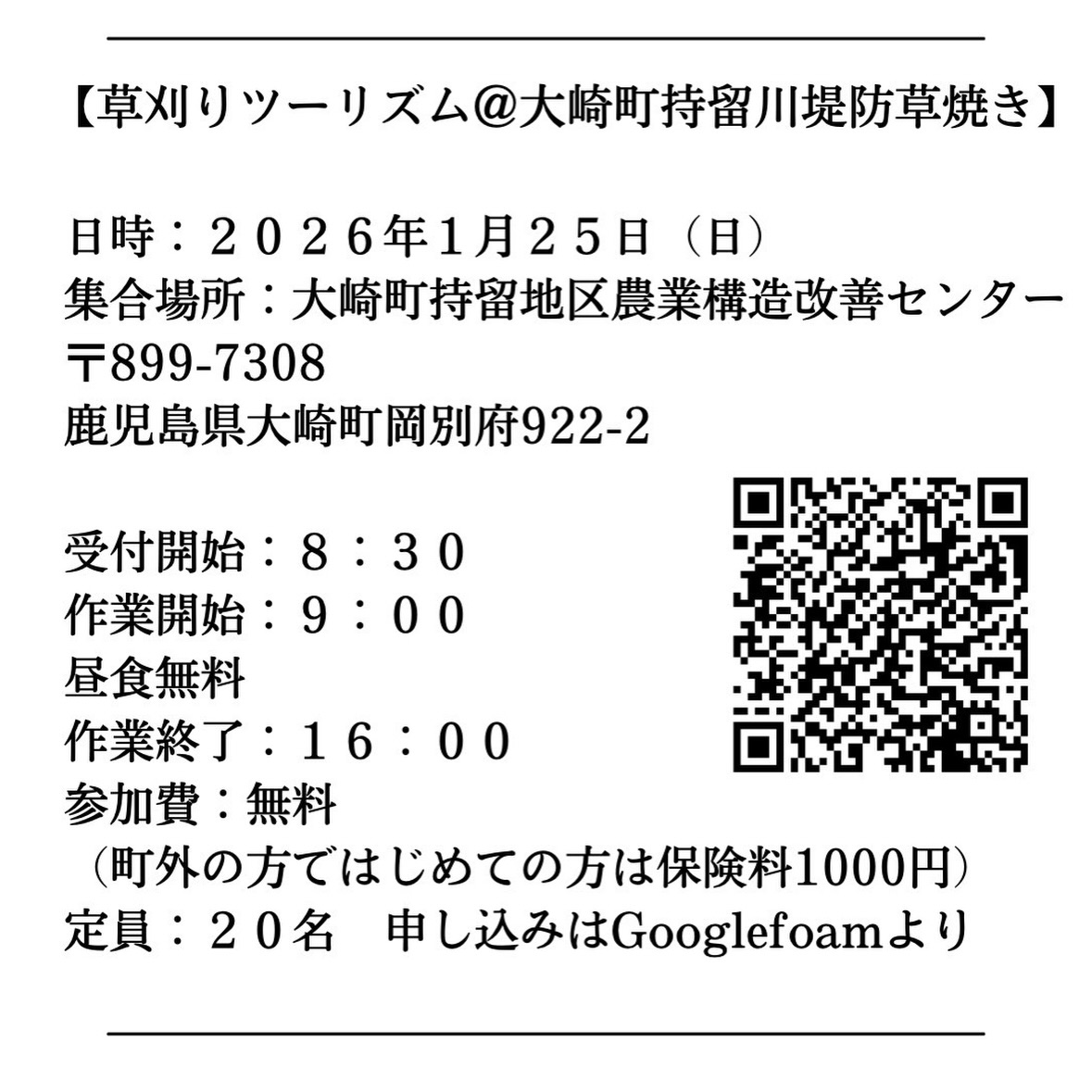 持留の方々を中心に、地域内外の力を合わせて草刈り・草焼きを支える試みです。